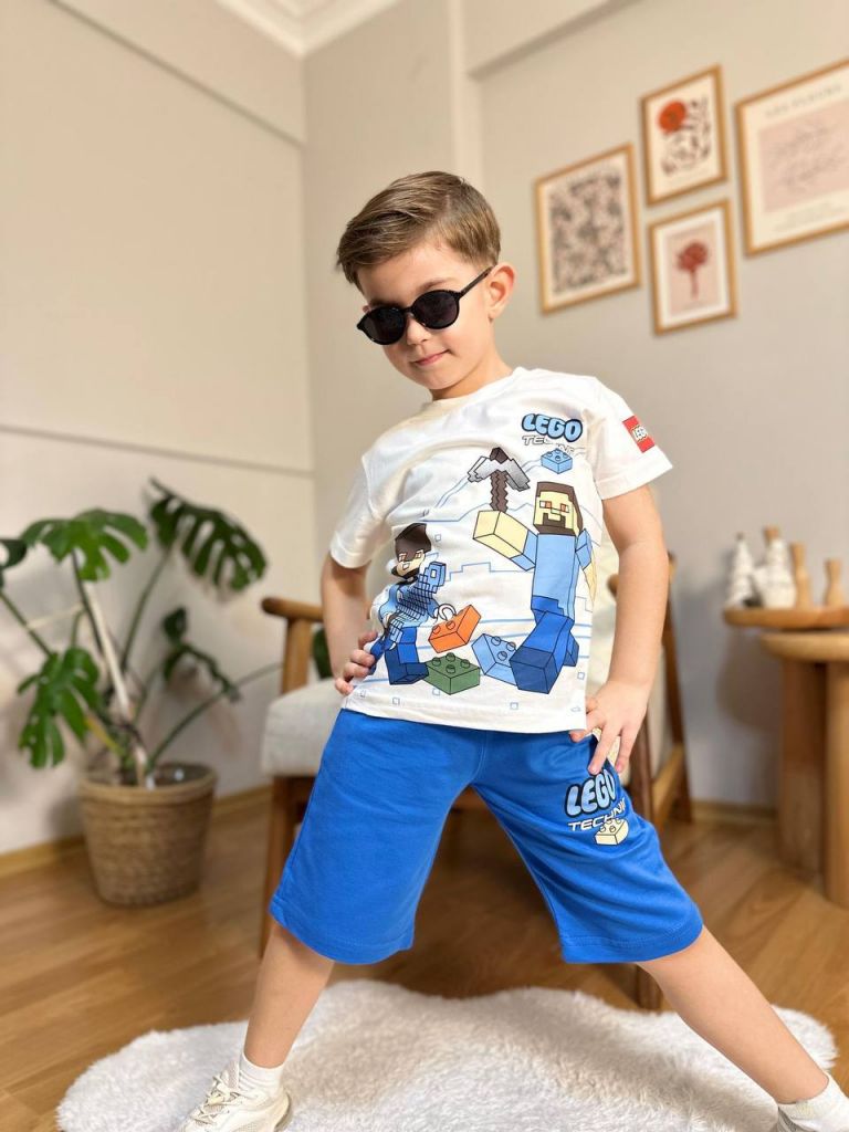 Детски комплект за момче Комплектът включва тениска и къси панталони с щампа.Памучна материя.Размери 3/10 години.Производител Турция.
