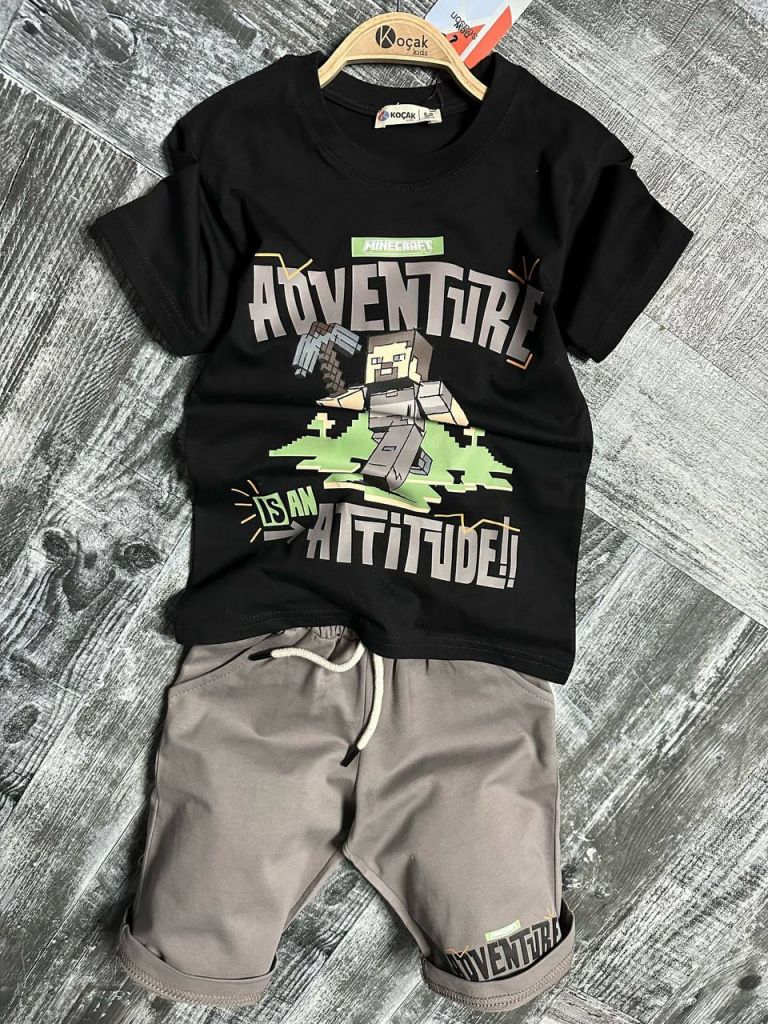 Детски комплект за момче Комплектът включва тениска и къси панталони с щампа.Памучна матер отия.Размери 3/10 години.Производител Турция.