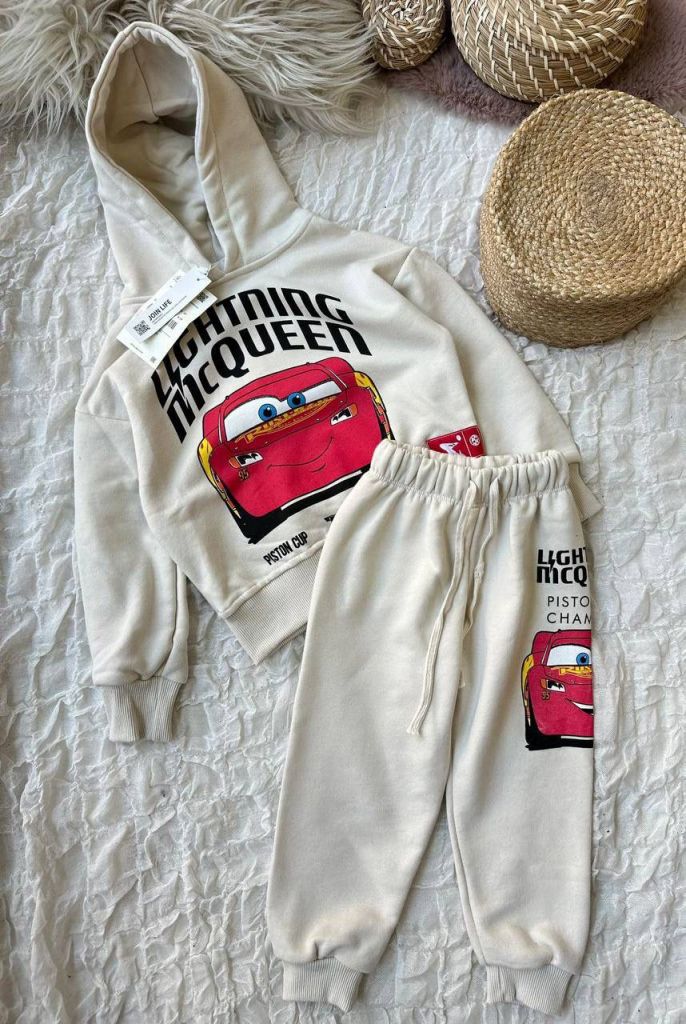 Детски комплект за момче с щампа на анимационен герой.Комлектът включва суитшърт и долнище с дълъг крачол.Памучна материя.Размери 2/3 и 3/4 години.Производител Турция.