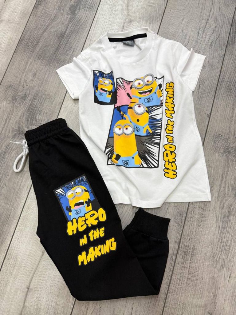 Детски комплект за момче с щампа на анимационен герой.Комплектът включва тениска с къс ръкав и дълъг спортен панталон.Размери 3/8 години.Производител Турция.