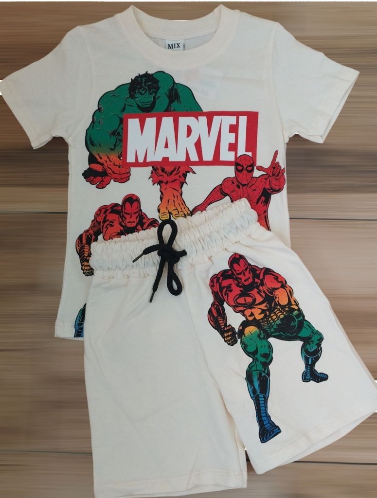 Детски комплект за момче с щампа на анимационен герой.Комплектът включва тениска и къс панталон от удобна, памучна материя.Размери 2/10 години.Производител Турция.