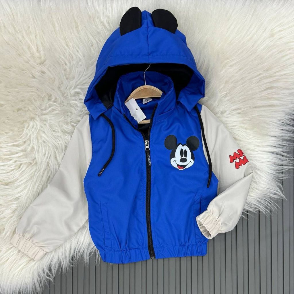 Детско яке за момче тип ветровка в преобладаващ син цвят,предно закопчаване с цип и качулка.Размер 7/8 години.Производител Турция.