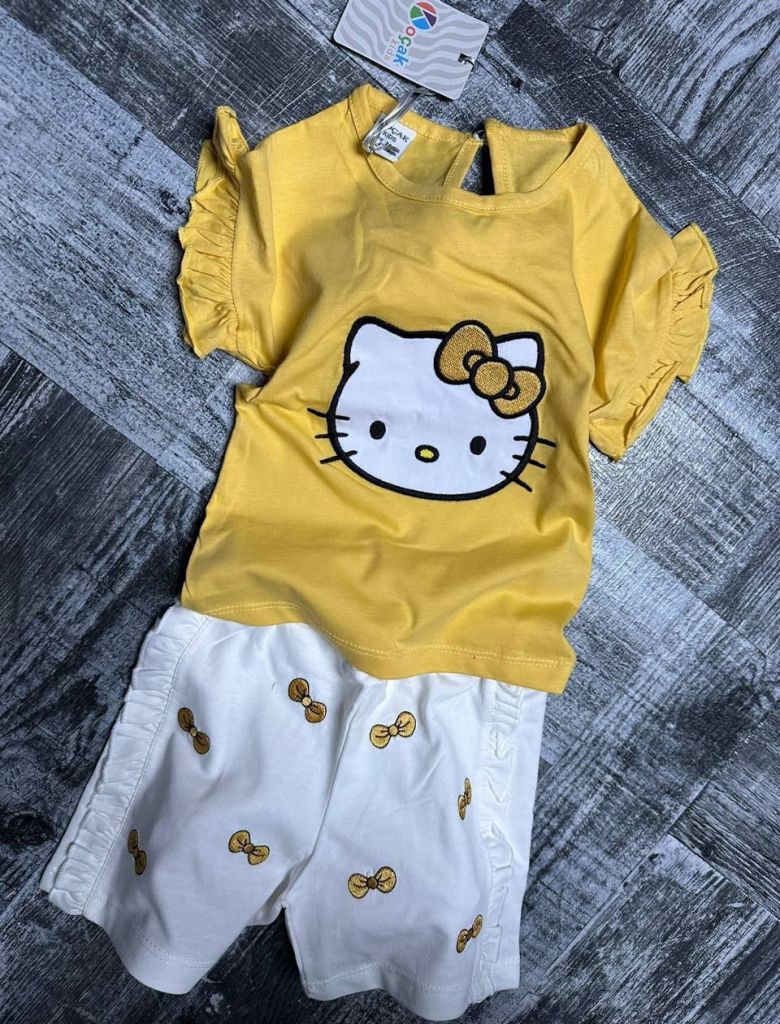 Детски комплект за момиче от две части, тениска с къс ъи къс панталон от памучна материя.Размери 9/12,12/18,18/24,24/36 години.Производител Турция.